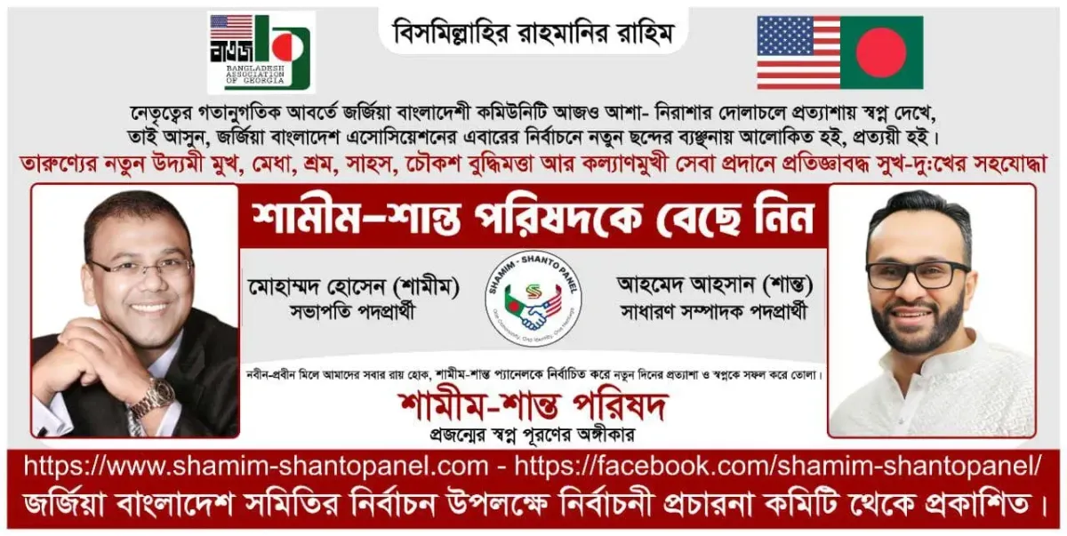 I’m Mohammad S. Hossain, and I’m running for President of BAG to bring honesty, accountability, and unity back to our community. Together, we can build a stronger, prouder Bangladeshi home here in Georgia for us and for our children.